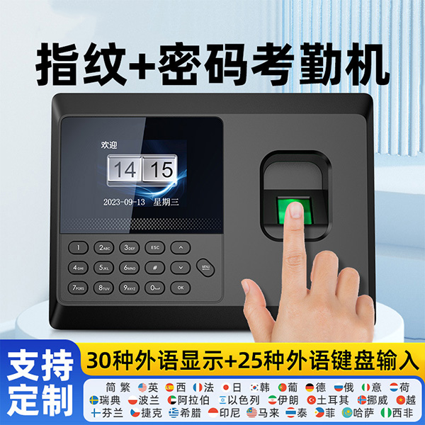 指纹考勤机打卡机单机版员工上班考勤机可选30种外语